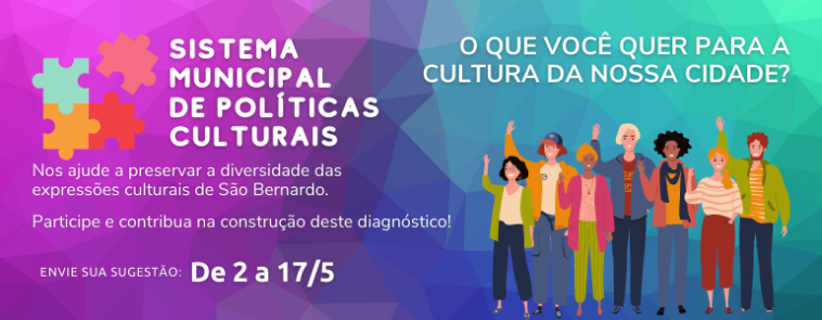 A Secretaria de Cultura e Juventude da Prefeitura de São Bernardo deu início, nesta segunda-feira (2/5), ao processo de atualização do Sistema Municipal de Políticas Culturais do município. Até o próximo dia 17 de maio, a população poderá contribuir na construção de diagnóstico que servirá como base para a implantação das ações públicas a partir de 2023.