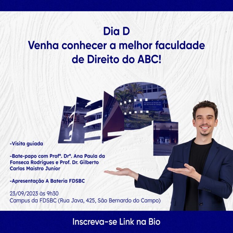 Para aqueles que sonham em seguir uma carreira jurídica ou desejam saber mais sobre as oportunidades oferecidas pela Faculdade de Direito de São Bernardo do Campo, o “Dia D” é a ocasião perfeita para se envolver e aprender mais sobre essa renomada instituição.