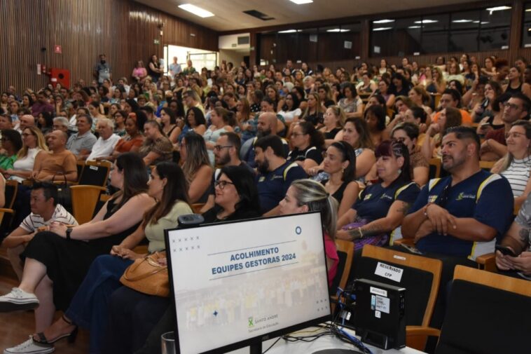 O Centro de Formação de Professores Clarice Lispector registrou casa cheia na manhã desta quinta-feira (8). E o público que ocupou os assentos era muito especial: diretores, gestores e coordenadores da Educação da rede municipal de ensino de Santo André. Em pauta estavam o planejamento para 2024 e os indicadores educacionais de 2023.