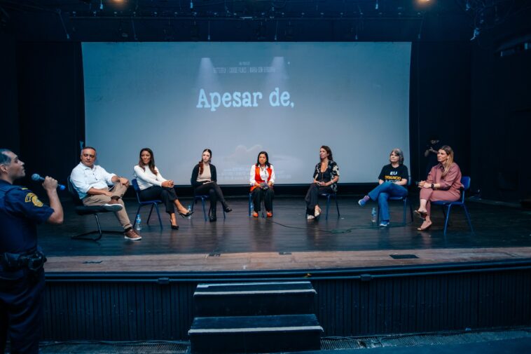 SELECIONADO – O documentário ‘Apesar De’ foi selecionado para participar de festivais internacionais no Uruguai (2024), Estados Unidos (2024), Turquia (2025) e Espanha (2025). Participaram da atividade a primeira-dama e presidente do Fundo Social de Solidariedade, Zana Lima, a gerente técnica da organização Ficar de Bem, Lígia Caravieri, o secretário municipal de Segurança, Major Topalian, a vice-prefeita Jessica Cormick, profissionais da GCM (Guarda Civil Municipal), educadores de escolas da cidade, entre outros.