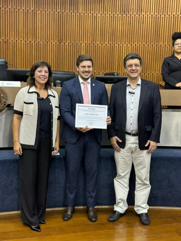 Na última quinta-feira (16), o presidente do LIDE Grande ABC, Jarbas Marques, e a CEO do LIDE Mulher Grande ABC, Naura De Nadai, participaram da Sessão Solene em Homenagem ao Dia do Empreendedor, realizada na Câmara Municipal de Santo André. A cerimônia, de iniciativa do vereador Daniel Buissa, teve como propósito reconhecer empresários que contribuem para o desenvolvimento econômico e social da cidade.