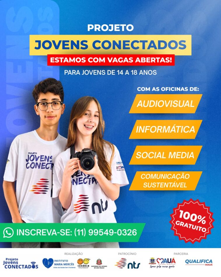 A Prefeitura de Mauá, em parceria com o Instituto Maria Mercês, está oferecendo uma nova oportunidade de formação profissional para jovens de 14 a 18 anos. Estão abertas as inscrições para três cursos gratuitos: Social Media, Audiovisual (Fotografia e Vídeo) e Informática Básica. Os interessados podem se inscrever diretamente pelo WhatsApp: (11) 99549-0326.