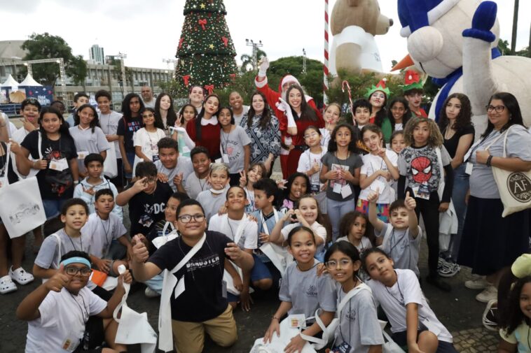 Na parte da tarde, o clima de solidariedade deu lugar à alegria e à magia do Natal. Jessica Roberta recebeu 100 crianças das instituições Abasc e Projeto Shalom, parceiras do Fundo Social de Solidariedade, para um momento especial no Paço Encantado.