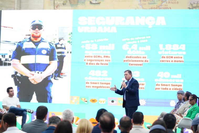 O secretário de Segurança Urbana, Orlando Morando, destacou que as câmeras do programa Smart Sampa serão grandes aliadas no combate à criminalidade durante as festividades na capital. “O acesso aos blocos, onde a gente tem a grande facilidade de fazer o reconhecimento facial, vai ser a grande chave para que a gente impeça ou efetue a prisão de qualquer procurado que tente acessar”, disse. “Nós queremos um Carnaval bonito, mas, acima de tudo, manter essa régua de ser o maior, melhor e mais seguro Carnaval do Brasil”, concluiu, lembrando que dois procurados pela Justiça foram presos durante o Carnaval do ano passado: um estuprador e um chefe de quadrilha de roubo a banco.
